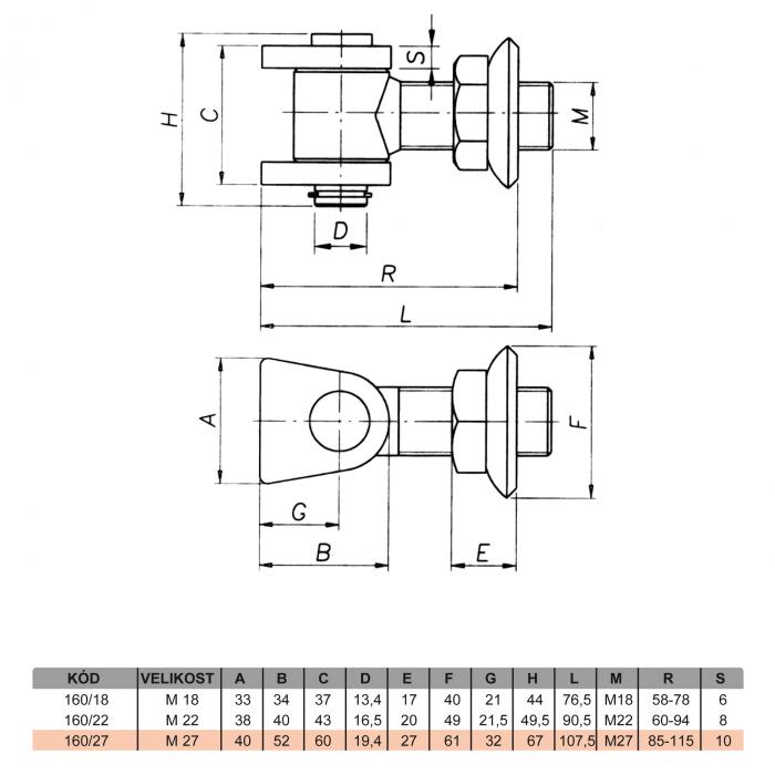 Regulovatelný pant určený k přivaření do kovového sloupku. K regulaci není nutné vytahovat čep pantu, provádí se pouze otáčením zalisované matice.