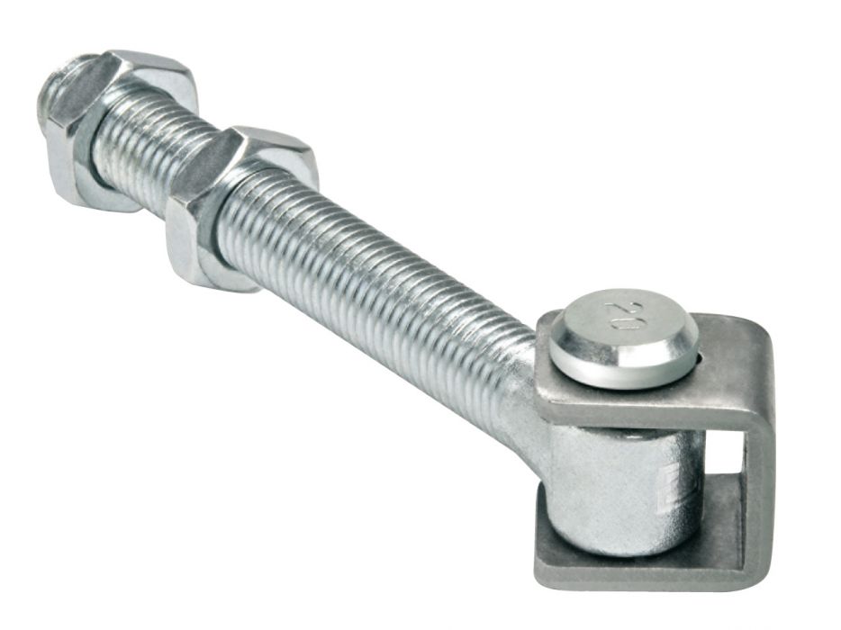 Regulovatelný pant určený k přivaření do kovového sloupku. Druhá část se instaluje provrtáním křídla brány a dotažením dvou matic. Regulace se provádí posouváním matic na závitu.